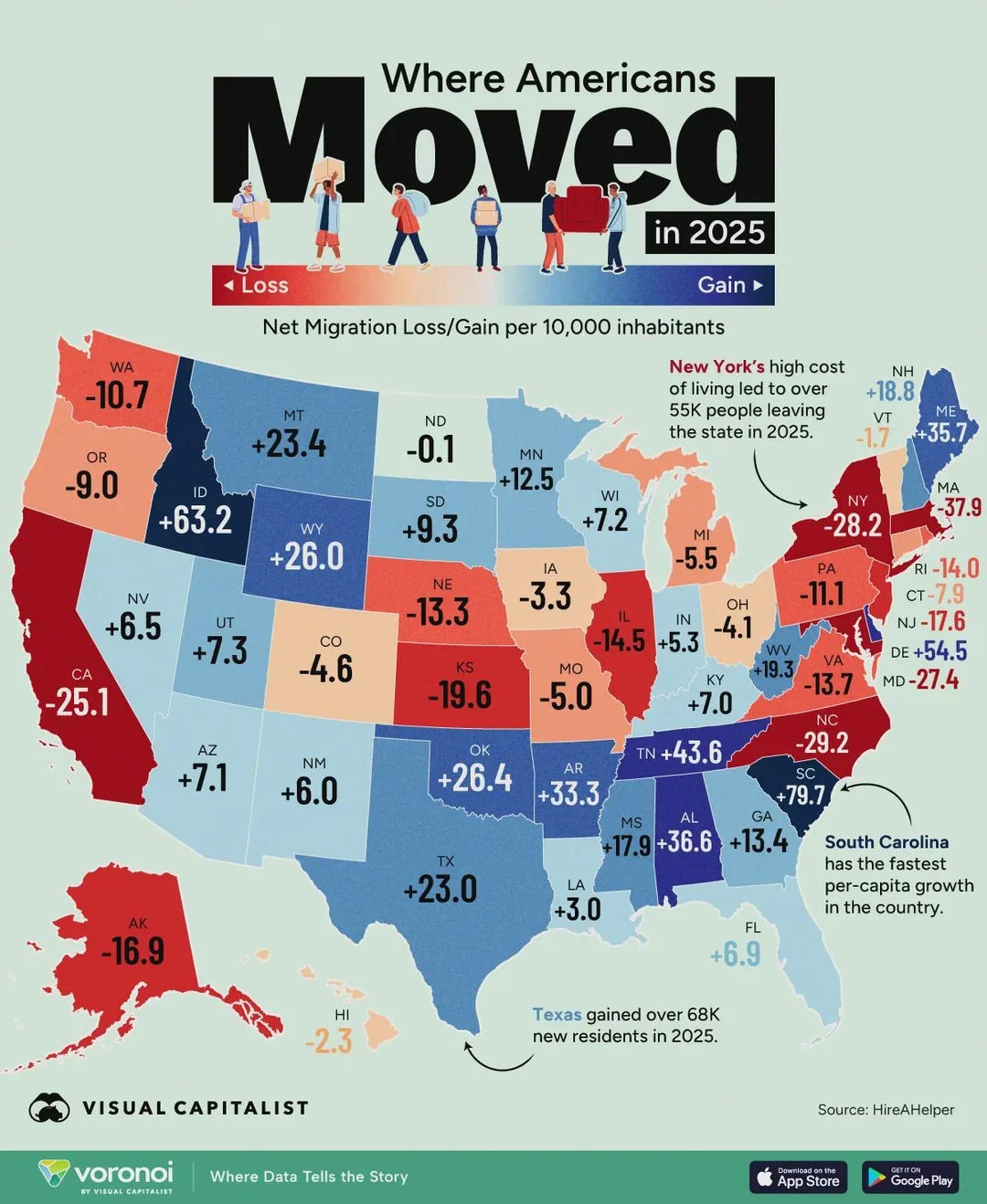 If you zoom out and look at the national picture, the story becomes clear fast. People are leaving high-cost, high-pressure states and moving into opportunity-driven markets.